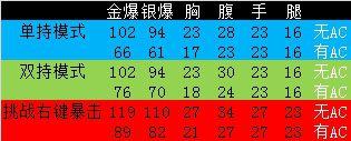 小结:例如100米的时候,双持模式无AC白银爆头威力会降低100*0.59%*94≈55的伤害,也就是说100米后白银爆头威力仅为94-55=39HP。而征服者在挑战模式则把距修强化到了0.16%的步枪级别,乱世却没有在挑战模式优化这一属性。