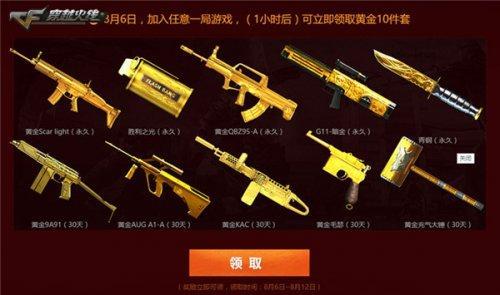 活动内容:8月6日登录游戏,并参与任意模式单局,即可领取黄金武器10件套。