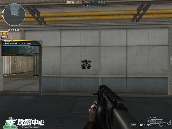 前 文已经提过,M1216这把枪的准确度在霰弹枪界是比较高的,从图中就可以看出来。这把枪的准星较小,所喷出的子弹也全都分布在准星周围。这也是 M1216这把枪的亮点之一,不仅单发威力大,还可尽可能多的把子弹打在敌人身上。如果是经常使用霰弹枪的玩家,建议把准星调成圆形形状,这样效果更加明 显。