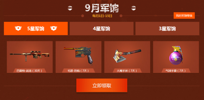 领取9月军饷计划礼包,请前往活动网站,拉到页面最底部。