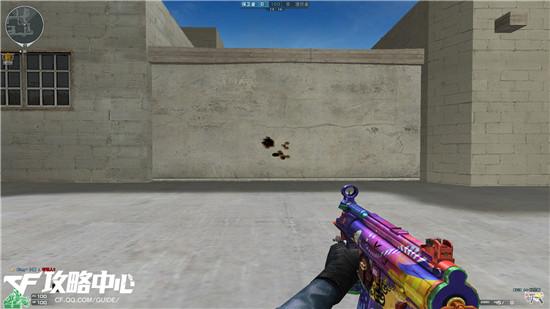 那么这一把枪的弹道如何呢?首先是MP5K—万圣的站扫,站扫正如看到的那样,和其他的枪相比要密集,且后面的子弹全部凝聚在右边形成一个圆点。玩家容易熟悉弹道,可以按照弹道来压枪。玩家只要瞄准身体胸腹部位短连发极易造成大幅度杀伤及爆头。