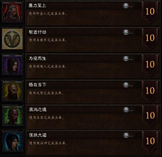- 提示:别看成就描述里写的是"完成第五章",其实只要单独听过泰瑞尔最后的对话就可以了。如果能找到朋友带你,在杀完A5Boss后与泰瑞尔对话,记得不要返回标题界面,小退换号,进来再与泰瑞尔对话,如此反复即可快速完成这6个职业成就。