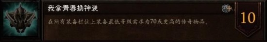 - 提示:"全身70级传奇"是角色成长过程中非常重要、也是非常基础的一环。通常来讲,英雄达到70级后只要经过数小时的伐木、赌博,就可以迅速凑齐一身传奇。缺少的部位还可以通过锻造补齐。
