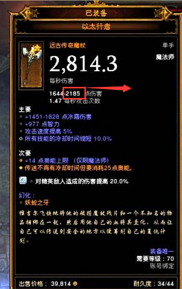 我用红字圈出的就是这个武器的伤害上限,不是上边的2814.3也不是下边的1828,就是红圈中的数字2185。