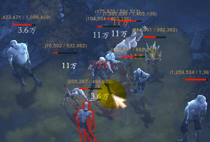 (至于为什么会出现11万3.6万这两种,是因为D3的伤害显示机制,虽然显示的是3.6万其实怪物的血条实际下降值为7.1万+3.6万 与11万其实一致,但是并没有单独显示出7.1这个数值 也没有并入一起显示。但实际上是一样的。)