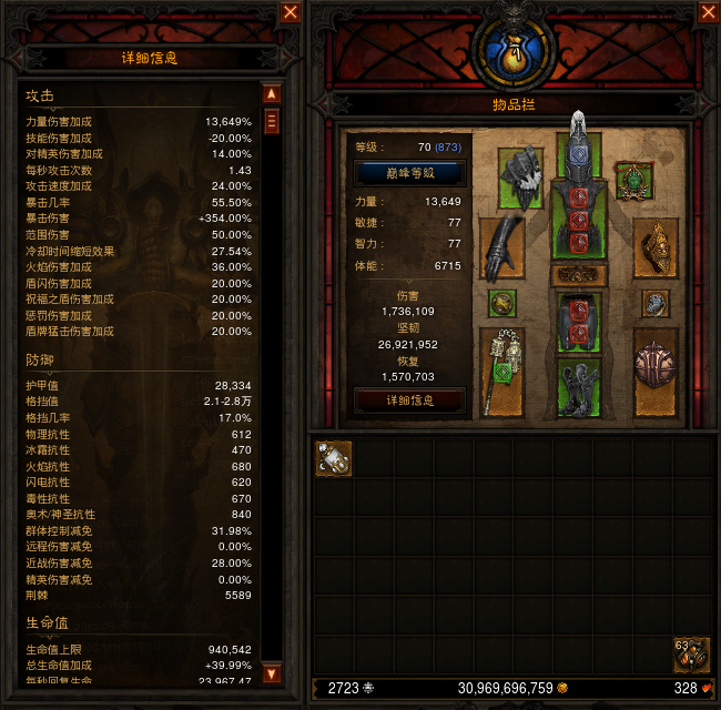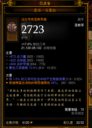 装备词缀的问题 我个人装备只追求了暴击暴击伤害和元素伤害 罗兰6件套的效果自带有攻速加成所以不需要额外的攻速词缀 关于项链跟护腕是要火焰伤还是神圣伤害我自己个人不清楚盾闪的伤害是神圣伤还是火焰伤 所以待定。