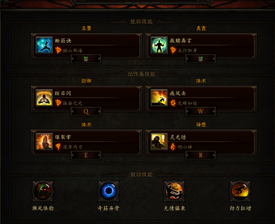输出手法就是黑人、炫目闪尽量别停,用疾风击跑图。用爆裂掌打上标记后用疾风击触发