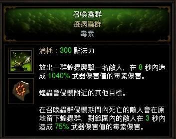 蝗虫被传染的那下触发4秒祖套,死去的敌人留下的蝗虫碰到就触发祖套(最多7秒,蝗虫3秒,特效4秒),如果怪多且是骷髅之类的弱怪,这招也可以。