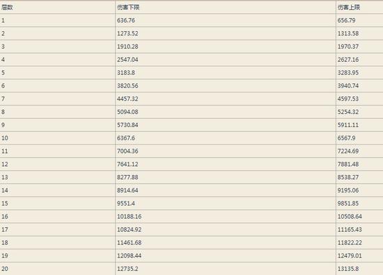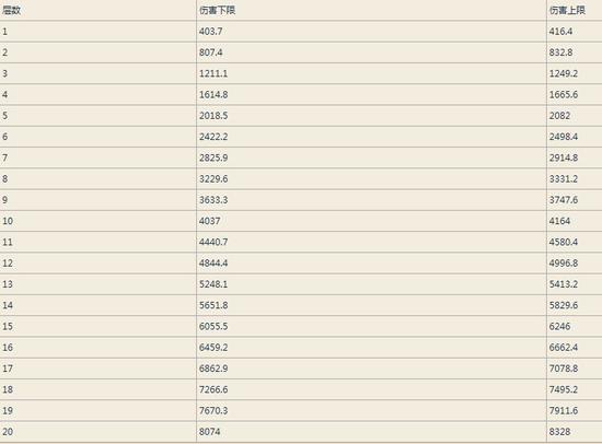 1-15层dot伤害如表二: