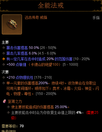 两个戒指的攻击属性 白字,爆率>爆伤,范围伤>攻速>敏