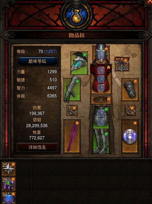 如图所示:这是我昨晚研究的暂时效率还不错的BD,争议比较大的是武器和护符位的穿戴及萃取: