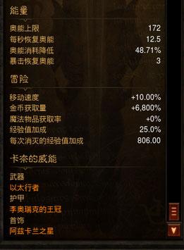 和其他所有辅助一样,CDR在辅助行业里一般都是第一词条,故而没有异议,但是考虑到黑洞CD过于长,还是要配合黄道的减CD效果,所以火旋风不是只有拳僧到火的时候才会用,是要一直放(打BOSS另当别论,下文会说),当然有人会说为什么不带勾玉呢,我想说,带了勾玉放弃坚韧和冰晶、剧毒的增伤覆盖率,实在不值。因为火旋风的不间断,所以减耗也显得尤为重要,这也是我穿火衣的原因,但是事实测试之后,即便如上配装,奥能还是不够,那怎么办呢,我想到了爆回词条。