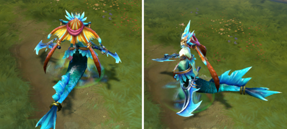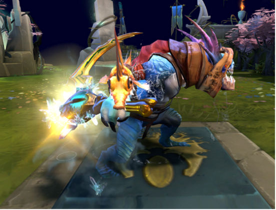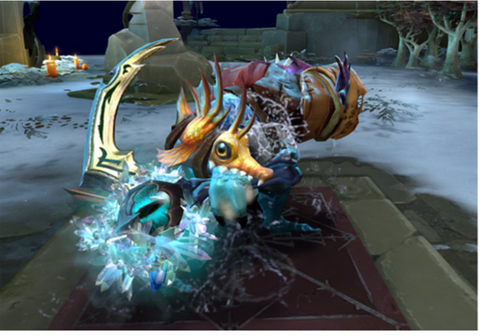 NO1天梯脏比团领导人之一小鱼人:作为天梯上分英雄之一。这个英雄有着出色的FARM能力和逃生能力。酱油遇到他就是死路一条。主力遇到也得绕道而逃。 而这把冰眼黄金刀的出现无疑又使小鱼人大热。武器本身有特效。据说打人的时候还有特效。 我已经按耐不住了。V社请把我的钱拿走。