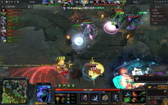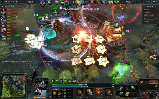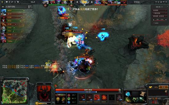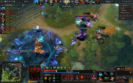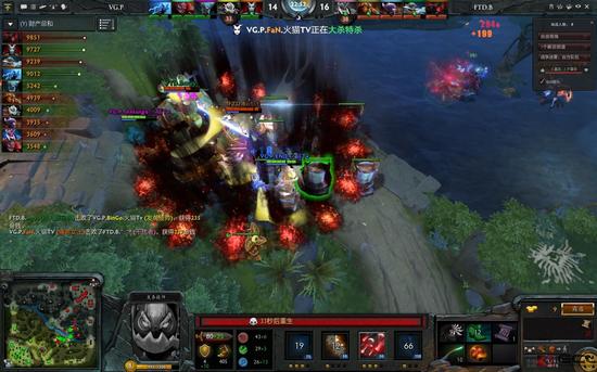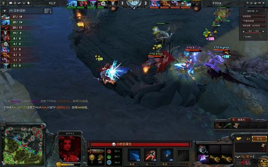 FTDB抓掉电棍后想打肉山,电棍直接买活赶到肉山开团,开启BKB抽影魔的攻击,影魔BKB摇完大后残血TP回家,其余四人依靠牛头和痛苦之源的控制将VGP几人风筝致死,LION临死前的一个穿刺强行拼死飞机,FTDB2换5。