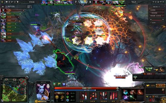 经过漫长的带线期后,FTDB装备成型。双大哥BKB加撒旦在手,推进中路高地,VGP女王虽然秒掉萨尔,但是队友顶不住夜魔和飞机的炮台输出,FTDB连破中下两路,VGP无力回天打出GG。恭喜FTDB搬回一分。