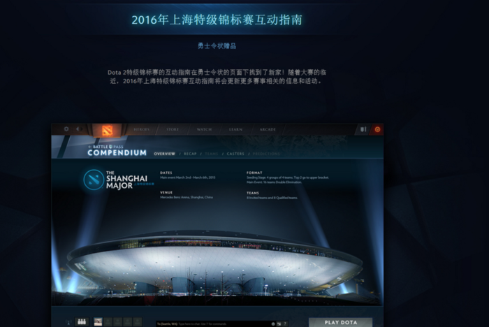 Dota 2特级锦标赛的互动指南在勇士令状的页面下找到了新家!随着大赛的临近,2016年上海特级锦标赛互动指南将会更新更多赛事相关的信息和活动。
