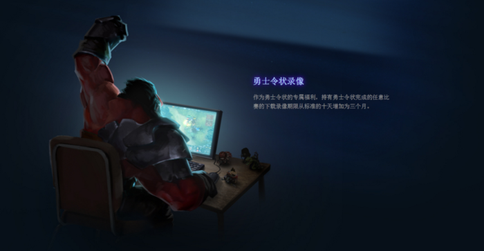 作为勇士令状的专属福利,持有勇士令状完成的任意比赛的下载录像期限从标准的十天增加为三个月。