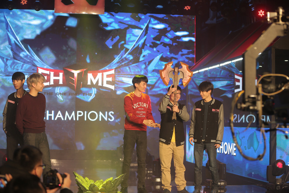MDL2015国际精英邀请赛冬季赛最终总决赛在今天上演,EG战队从败者组击败OG战队后将再次挑战EHOME,最终在BO5的比赛中EHOME打出一波高潮直接将EG战队3:0横扫,成功夺得中国军团一年来的首个世界冠军,我们一起来欣赏一下EHOME夺冠现场的精彩图片。