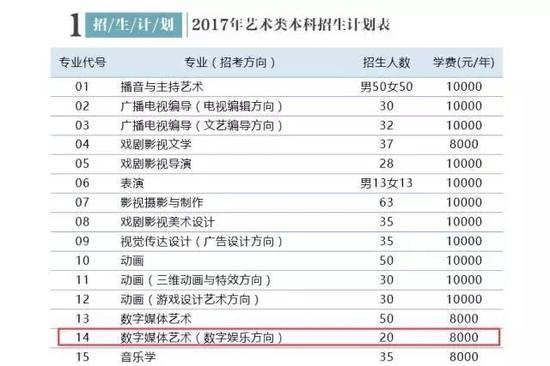 2017年中国传媒大学艺术类招生新增数字媒体艺术专业(数字娱乐和电子竞技方向),将培养电竞运营与节目制作方向的学生。文理兼收,学制4年,学费8000元/年。