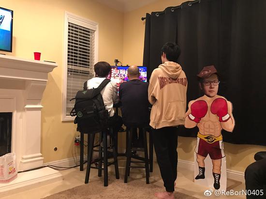 吃完晚饭,在我们等待主办方的shuttle送我们回酒店的时候。小黑皮居然想挑战神父的拳皇水平,经过神父的验证,小黑皮和我是一个水平。