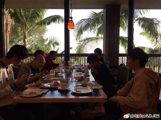 昨天晚上大家为了调整时差,都撑到9点多才睡觉,今天早上6点自然醒,都休息地特别好。吃完早餐,一起开了个赛前准备会,9点左右大家就一起去了BTS的house。