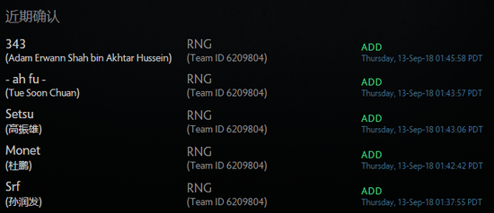 虽然我们在吉隆坡Major中国区海选赛上已经看到了RNG战队的阵容,但是RNG俱乐部尚未发布官宣,所以阵容随时可能发生变动。他们在DOTA2登记系统上注册了正式的名单。