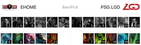EHOME在天辉方,LGD在夜魇方。BP阶段EHOME一手直接禁用了LGD最近场场必选的先知,接着又ban了线上强势的黑贤,最后一手ban了美杜莎。选人方面也是选的非常快,看到LGD的一手doom直接点了最近妖精经常用的并且不是那么怕doom的骷髅王和辅助冰龙。4、5手接着ban了两个能削蓝的英雄小娜迦和敌法师。选出XinQ的绝活小仙女和最近430用的比较多的船长。最后一手ban了火猫不想让LGD的双大哥都过于灵活,选了蝙蝠线上压制水人。LGD的ban人也比较中规中矩,ban掉了大热辅助亚巴顿小强,又ban了EHOME最近用的比较多的TS。一手直接拿下doom,二手选出骨法应该是想用骨法骚扰骷髅王的发育。接着ban掉了长手不太怕骨法的火枪,又ban了全能。3手点出爆发控制都很不错并且还能抽蓝的莱恩,4手看到EHOME的爆发和控制都不太足的情况下拿出大哥水人。最后一手NEC来保证团队节奏。