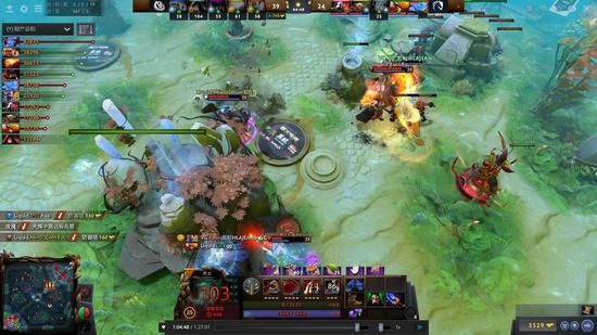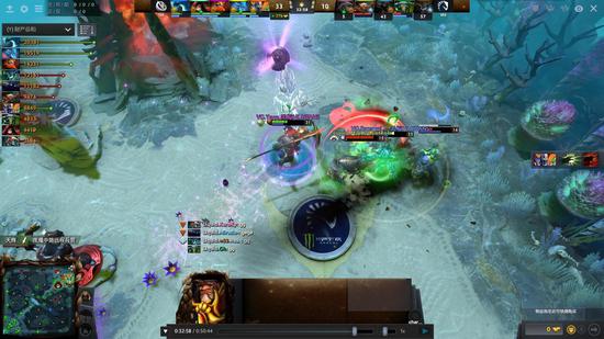 19分半为了抢符双方在下路提前开打,DP被先手但是非常肉没有死,小鱼过来中了一个沉默直接被秒,DP交大拆掉下路二塔。20分钟萨尔为了吃双倍被人马单杀。22分钟VG打盾但是Liquid不敢守,剑圣拿到不朽之守护。