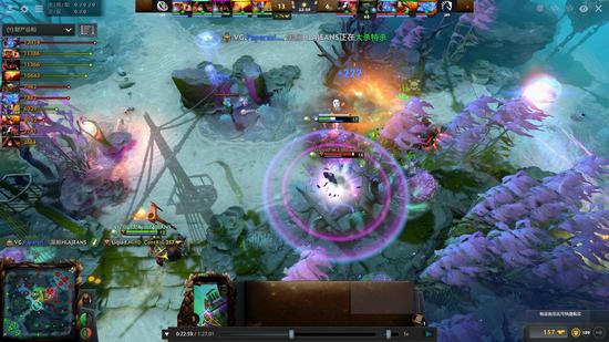 17分钟VG抱团推进中路二塔,双方经过了一波技能互换但是没有死人,VG撤退Liquid追了出来,留下了一个墨客,但是VG反打带走了风行和双辅助,小鱼人赶来风行买活继续反打,这一次用马尔斯换掉了人马和DP,但是接着小鱼人想要反眼被VG蹲到和墨客一换一。