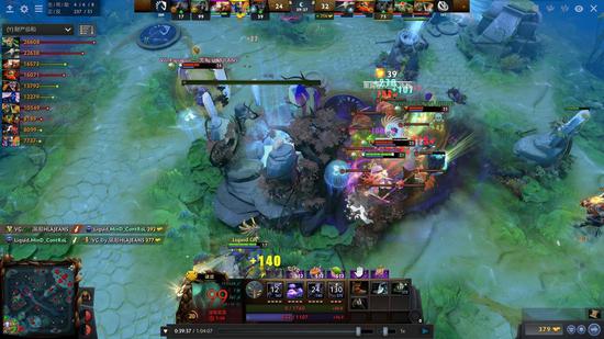 18分钟在中路继续爆发团战,人马墨客先死,凤凰大招砸中3人,电狗支援过来击杀火女,残血帕克想跑没有跑掉。Liquid众人现在在用命替奇迹哥的电狗拉扯发育空间。23分钟doom巨魔同时更新BKB,VG开雾看到人马拉比克跳举doom给大击杀。经济领先来到7K。