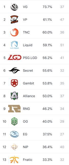 然后是场均人头数,打法凶悍的VP、TNC、LGD都很有可能。只不过笔者想到TNC的三号位很有可能因为签证问题来不了Ti,所以TNC的实力或许会大幅度下降,于是乎便选择了VP,当然LGD也是可以选择的。而场均时长最长的队伍,我选择NaVi是因为预选赛里,NaVi的比赛时长是所有从预选赛晋级的队伍里最长的,和RNG一样,比赛时长差不多是40分钟起步。但是我们要考虑一点,RNG面对弱队应该是可以轻松取胜的,这样一来20分钟、30分钟的成绩会缩短平均时长,所以我选择了NaVi(其预选赛淘汰赛阶段的平均时长为40:66,RNG的为35:27,INF的为36:55,FWD最少)。