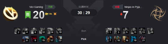 TI9国际邀请赛小组赛B组第7轮,又出现了一个不大不小的冷门,B组垫底只有1分的NIP在面对VG时拿出了一个控制给力的辅助巫妖以及一个三号位亚巴顿,从VG身上啃下了一分。