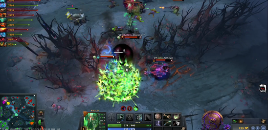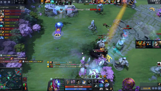 34分钟,VP用卡尔的代价打了一波FNC的团灭。小鱼人及时赶到战场完成收割,这波之后经济已经拉到16k,优势局小鱼人持续视野压制,FNC已经非常难了。
