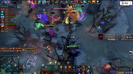 TI9国际邀请赛小组赛B组第九轮,最后的胜者组名额之争,VP笑到了最后。