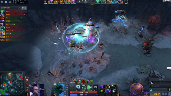 17分半,Liquid带盾逼高,破掉LGD上路高地,虽然TA交盾后背虚空罩住打死,但冰龙的大招也带走了虚空。Liquid经济领先9K。