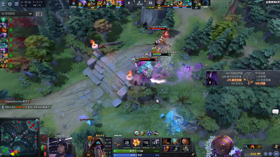 21分钟,Liquid在LGD的主野区铺满了视野,先抓死大牛随后开团,不过LGD这边护阵型护得很好,拉比克和毒狗互换。之后LGD又依靠人马和飞机的强势期,再抓死小小毒狗,幽鬼也慢慢刷了起来,两边都在玩捉迷藏。