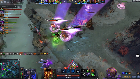 一分钟后,虚空和飞机在下路赏金符点battle,但虚空输出不够跳开直接原地TP,被拉比克举起来,配合飞机大牛秒掉,奇迹哥送了。抓住这个机会,LGD破掉了Liquid中路高地。