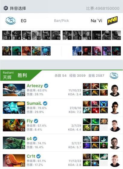 在小组赛与Natus Vincere的BO2对决中,Evil Geniuses一下子就创造了Ti9的三项记录。长达82分钟的鏖战爆发了巨大数量的击杀,SumaiL的蓝色闪光在人群中肆意杀戮,只可惜Evil Geniuses这边仅仅靠SumaiL一人是很难夺得胜利的。Evil Geniuses最终凭借着超级兵的优势强行拆家,好不容易地夺得了比赛的胜利。