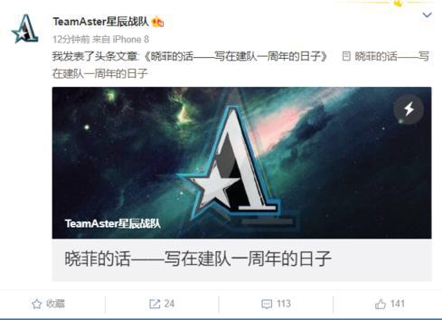 作为国内最早官宣大名单的队伍,Aster无疑成为了大家讨论的焦点,无论是Sccc的转一还是Fade的转五,都足够让人期待。而今天,Aster战队官方微博也发布一篇长文《晓菲的话——写在建队一周年的日子》,文中讲述了Aster建队一年来的点点滴滴和这赛季的转会期故事以及对新赛季的展望。以下是他们的微博原文: