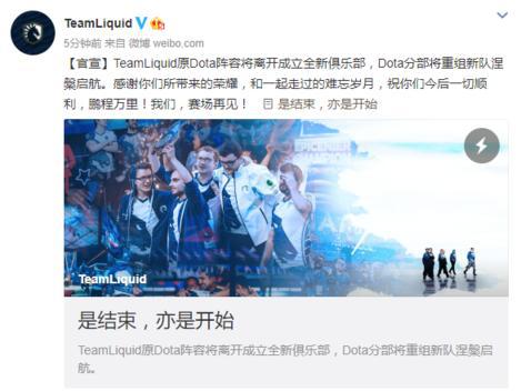在北京时间9月13日,Team Liquid原Dota2阵容将离开成立全新俱乐部,而Liquid的Dota2分部将重组新队涅槃启航。以下是他们的官方公告: