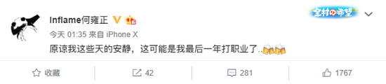 数天前,Inflame在个人微博上发了一条疑似“退役前告白”的内容,表示这可能是他最后一年职业生涯了。