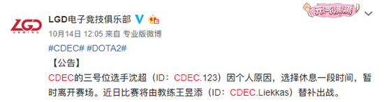 昨晚,CDEC在官方战队登记系统中进行了人员变动。