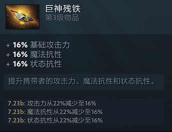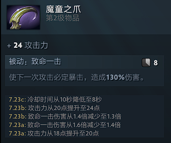 补刀斧必备,由于现在近战自带格挡,无需买圆盾,对线可以携带更多的属性装,让队友养两棵吃树,在一般情况下控到2个赏金后就可以用信使运一个大药过来,如果队友只给了一棵吃树,那就买组吃树,一定不能断药