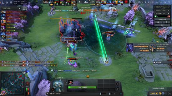 VP敌法,影魔,兽王配合小牛和小鹿;Gambit则是TB,紫猫,人马加上拉比克冰魂。