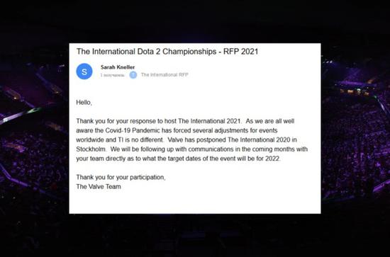 自从V社宣布推迟TI10已经过去了4个月,在此期间并没有更多关于TI10的新闻流出。几周前,TI11的申办组织明斯克电竞协会公布了一封来自V社的邮件,里面写道TI11将推迟至2022年,但是V社并未做出官方声明。