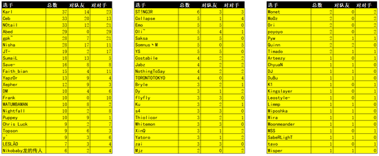 众所周知,打赏的“攻击性”明显强于鼓掌,大部分选手打赏对手的次数都高于打赏队友。所以你在榜单上可以看到2-29、3-27、3-24、1-21、1-19、0-16这样的数据。但凡事总有例外,VP的几个小伙子似乎更喜欢互相打赏,Kingslayer和DM过半的打赏次数都用在了队友身上。