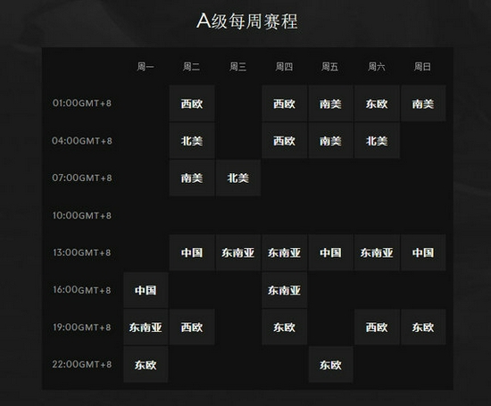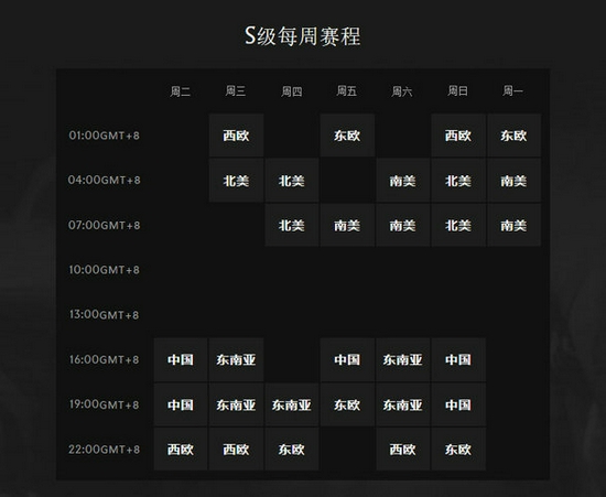 DPC中国联赛将在每周一、周二、周五、周日举办,其他地区联赛的举办时间详见下表。