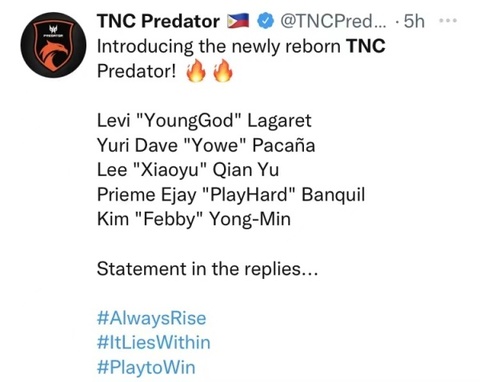 不过TNC战队已经做好了征战新赛季的准备,以下为公告原文: