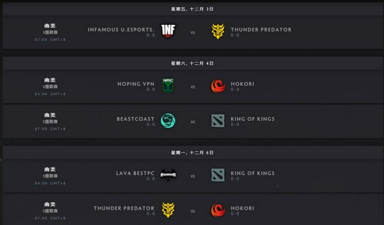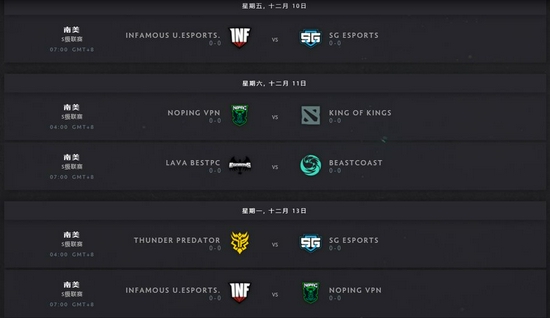 DOTA2客户端刚刚发布了一些关于DPC新赛季的信息,其中包括了新赛季的DPC赛程。南美赛区S级联赛将在北京时间12月3日凌晨7点开始,首日的比赛为Infamous对阵Thunder Predator