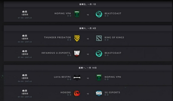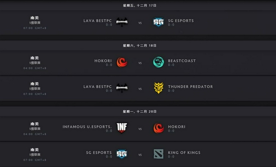 南美赛区S级联赛已公布赛程如下(客户端更新至1月10日)